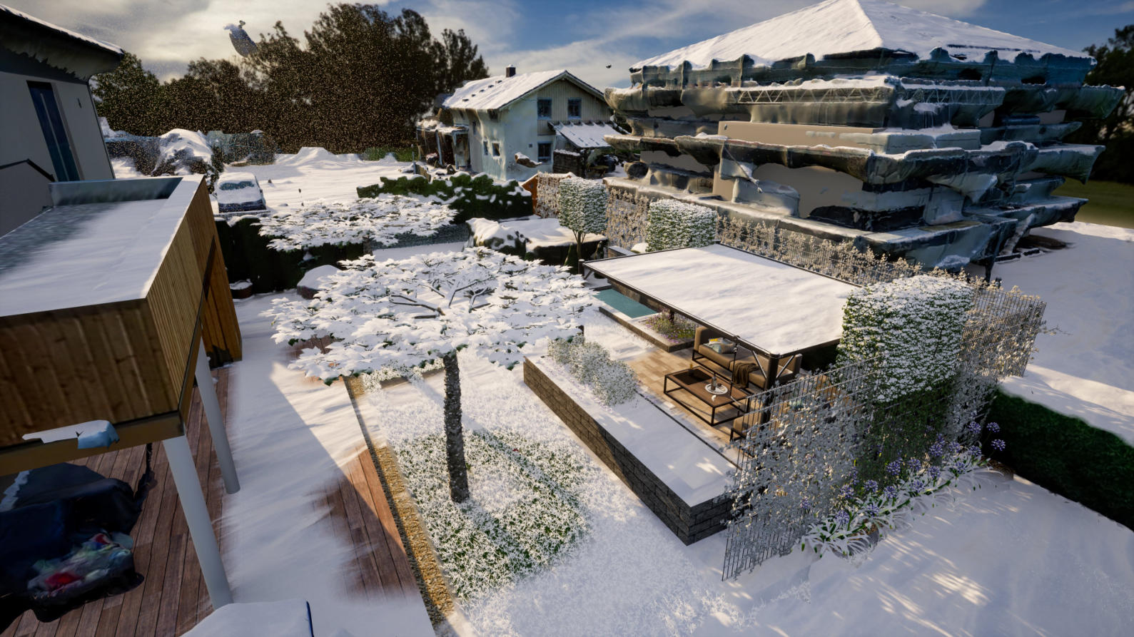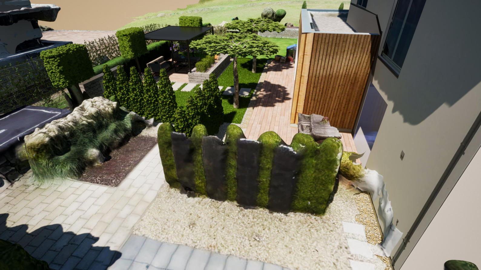 Mit unserer VR Brille haben Sie die Möglichkeit virtuell in Ihre Gartenanlage einzutauchen. Bewundern Sie Ihren Traumgarten schon jetzt in allen Jahres- und Tageszeiten. Hierbei können Sie Größe und Strukturen besser erkennen und erhalten einen vollständigen Überblick - als stünden Sie bereits in Ihrem Garten.