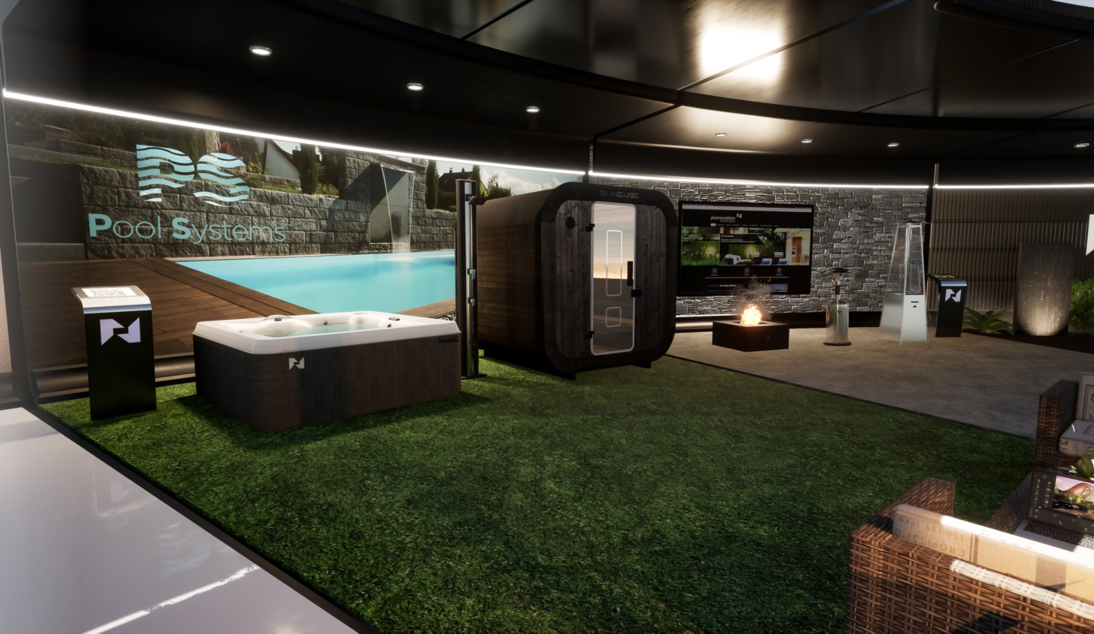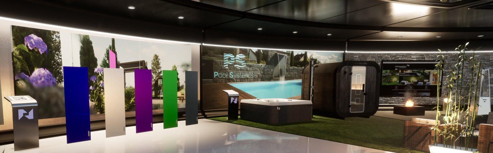 In unserem Showroom präsentieren wir Ihnen die Neuheiten.wir Präsentieren Ihnen in unserem virtuellen Showroom stets Neuheiten und Innovationen rund um die Gestaltungsmöglichkeiten für Ihren Garten. Von Designelementen über Beleuchtung bis zur Wellnessoase mit Sauna und Whirlpool - lassen Sie sich inspirieren.Auch kleine Helfer wie Rasenmäher Roboter, Heizstrahler und Grillplatz dürfen nicht fehlen. Die von Ihnen gewählten Elemente werden direkt in Ihre Planung integriert.